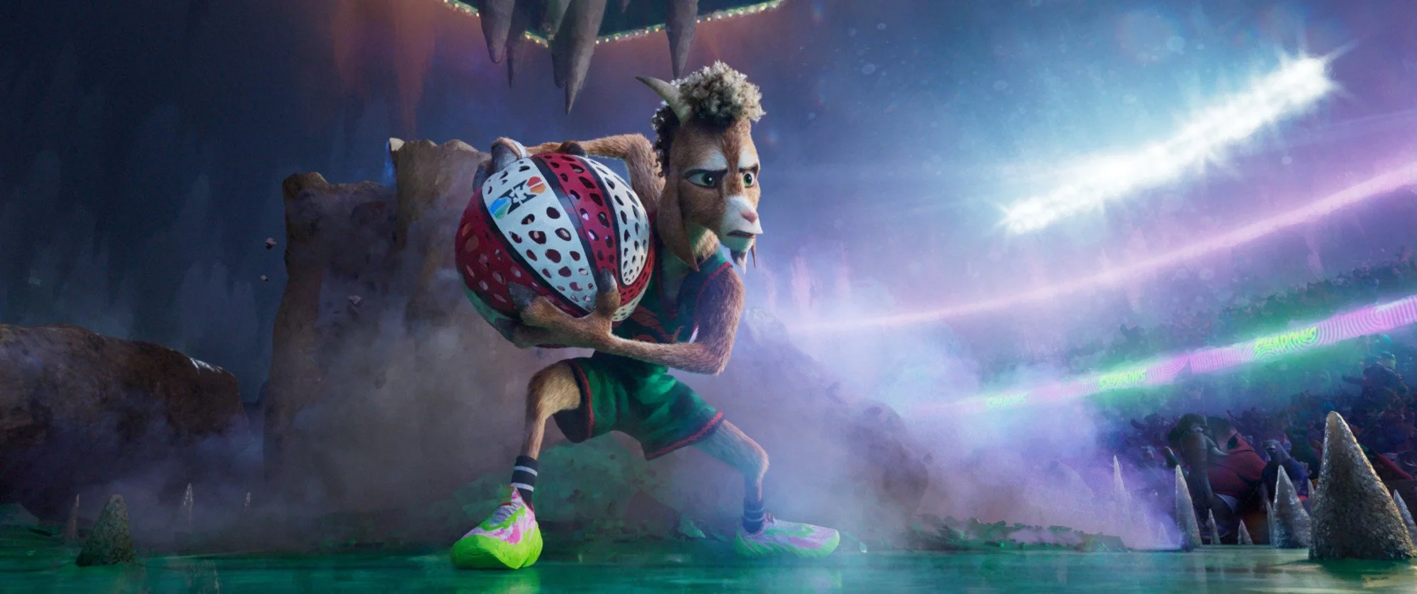 The main obstacle to Will’s roarball dreams is that he’s a goat — and smaller animals have never played in the pros in roarball. Will aims to prove himself, accepting an all-comers street ball challenge from the league’s biggest showboat, a horse named Mane Attraction (voiced by Aaron Pierre). When the footage goes viral, it catches the attention the Thorns’ owner, Flo Everson (voiced by Jenifer Lewis), who signs Will to a contract.